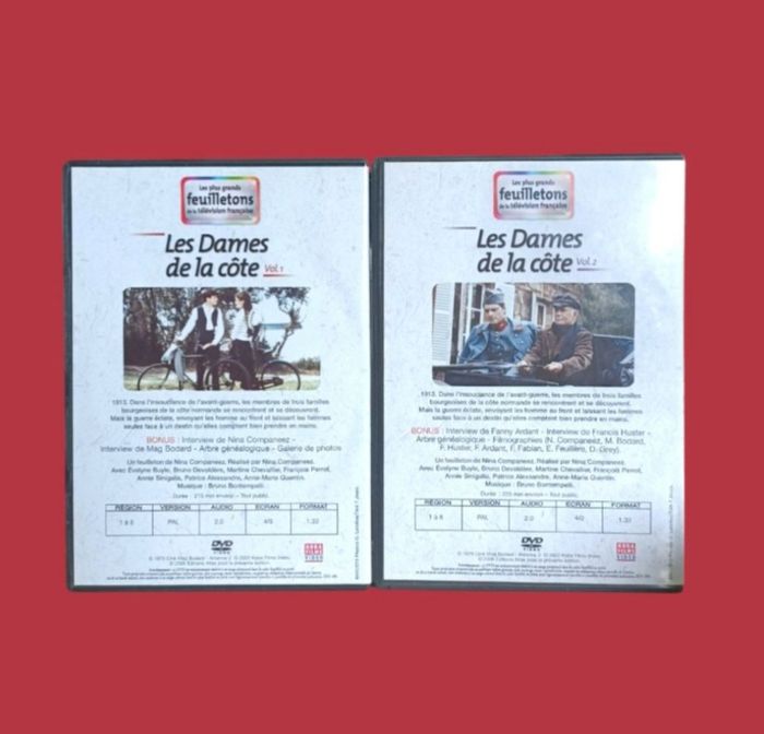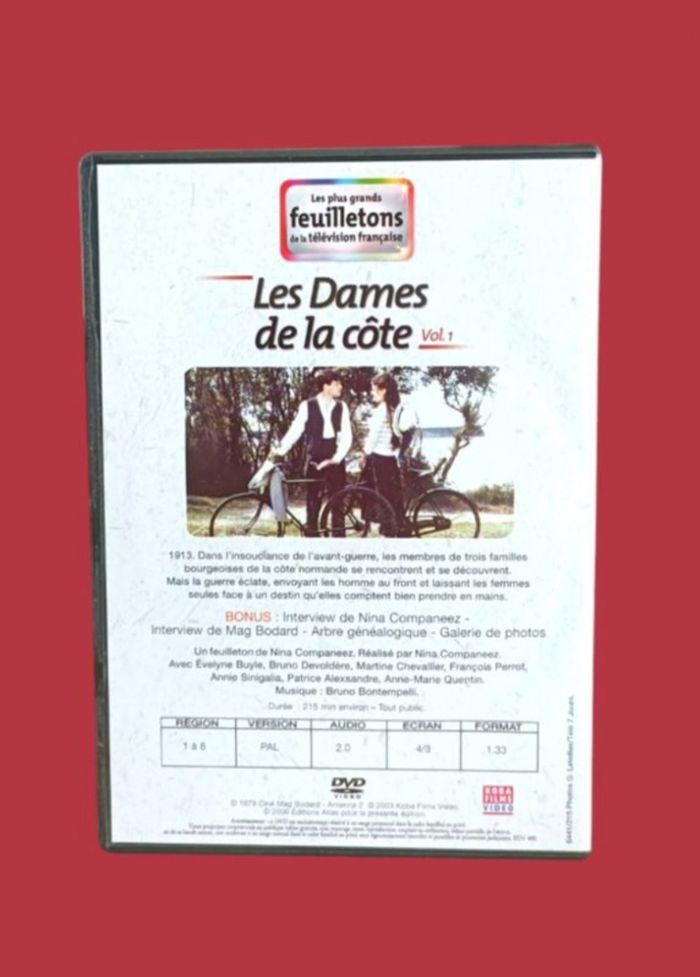 Lot de 2 DVD formant l'intégrale de la série télévisée "Les Dames de la côte" Collection "Les plus grands feuilletons de la télévision française" - Éditions Atlas Très bon état (aucune micro-rayure) Réalisateur : Nina Companeez Acteurs : Fanny Ardant - Francis Huster - Françoise Fabian - Edwige Feuillère - Michel Aumont - Denise Grey 1913. Dans l'insouciance de l'avant-guerre, les membres de trois familles bourgeoises de la côte normande se rencontrent et se découvrent. Mais la guerre éclate, envoyant les hommes au front et laissant les femmes seules face à un destin qu'elles comptent bien prendre en main. BONUS : ✓ Entretiens exclusifs des acteurs Fanny Ardant et Francis Huster ✓ Entretiens exclusifs de la réalisatrice Nina Companeez et de la productrice Mag Bodard ✓ L'arbre généalogique "Qui est qui ? " dans "Les Dames de la côte" ✓ Filmographies de la réalisatrice et des acteurs ✓ Chapitrage Durée : environ 7 h 20