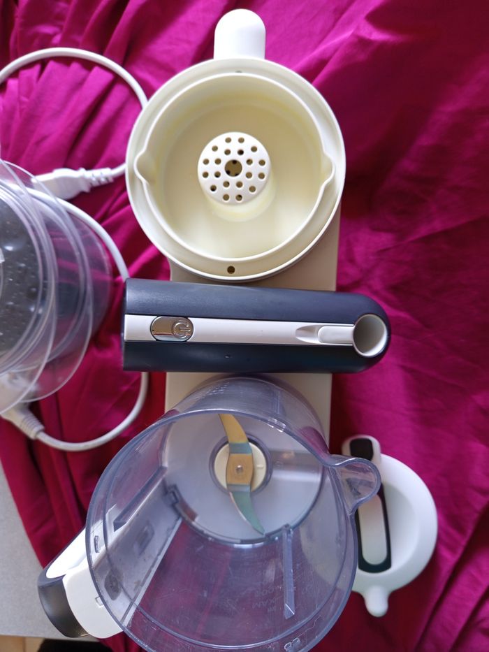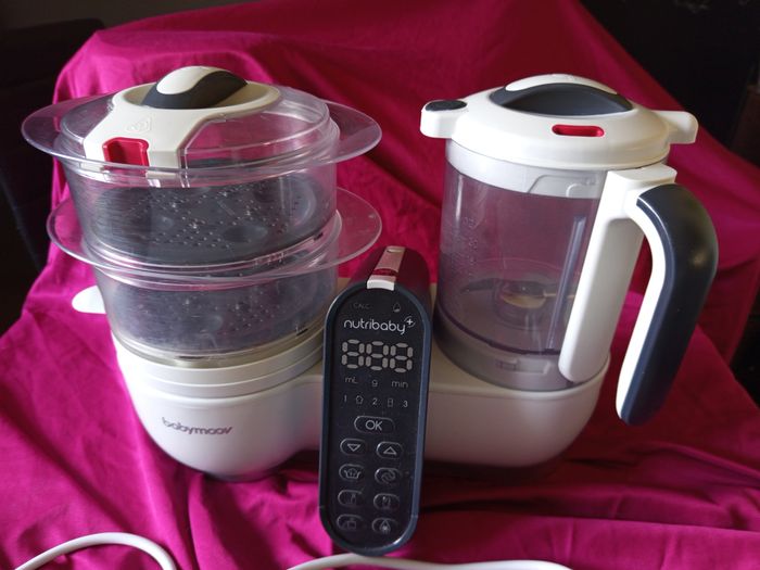 Babymoov nutribaby, fonctionne très bien, juste un bac vapeur fendue mais qui ne fuit pas du tout !, et quelques traces sur plastique qui ne partent pas, à part ça nickel👌