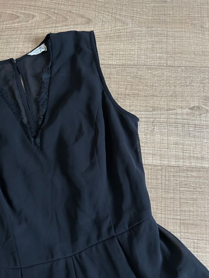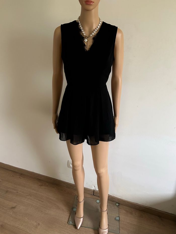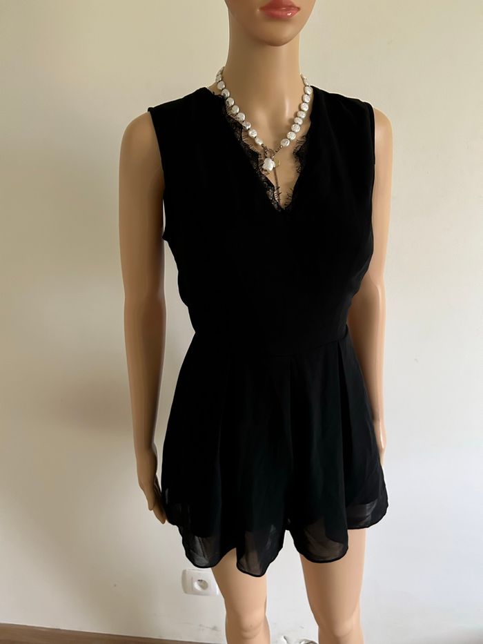 Joli combishort noir sans manches, de marque Molly Bracken. Taille XS. Porté quelques fois, en très bon état. aisselle à aisselle 43 cms taille 29 cms à 38 cms longueur depuis épaule 75 cms La taille est extensible Étiquette intérieure de composition coupée