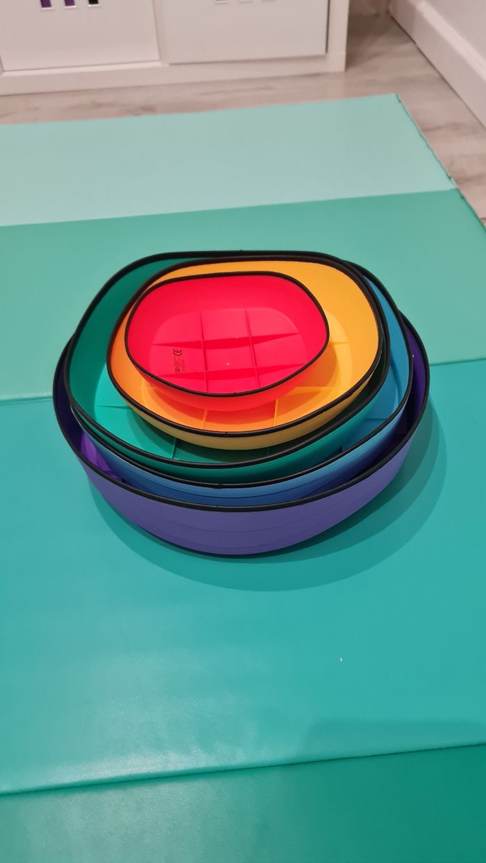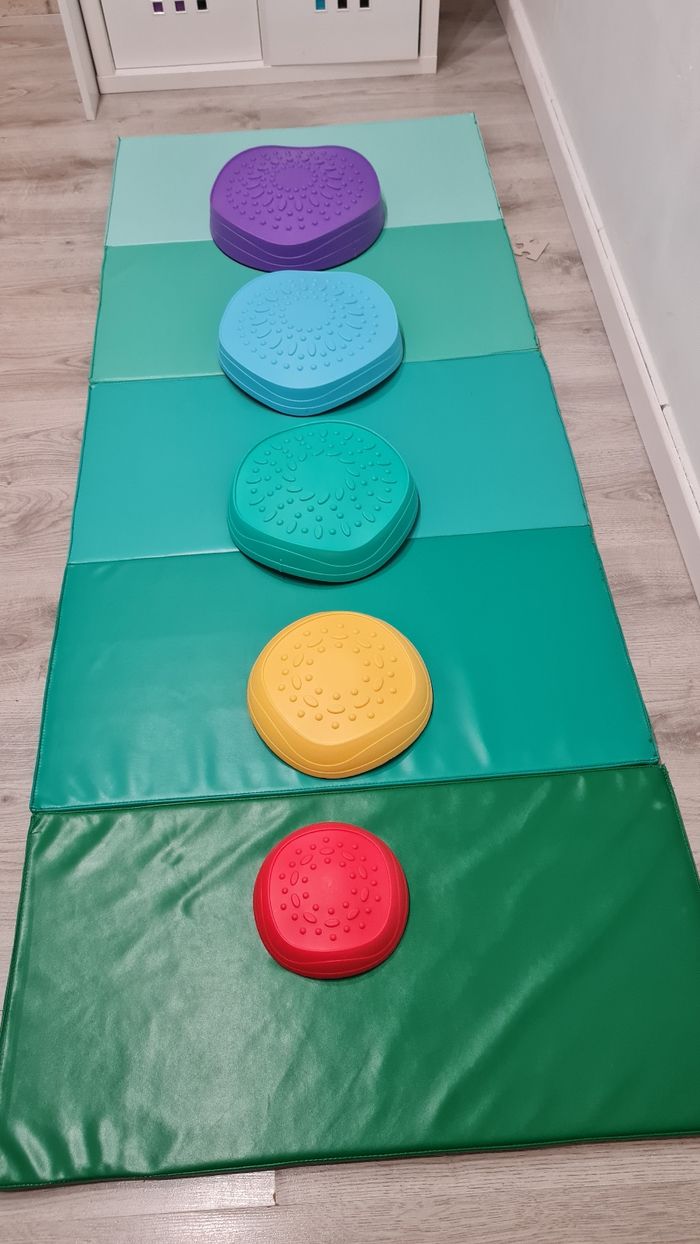 Blocs d'équilibre à empiler de 5 pièces de différentes tailles Idéal pour faire des parcours de motricité. Facile à ranger Neuf