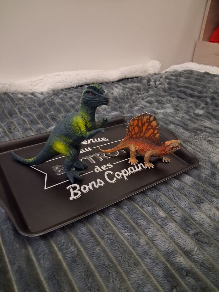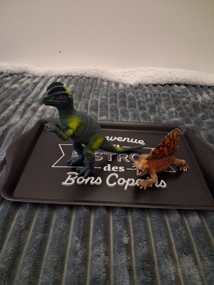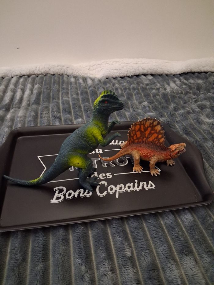 Lot de 2 dinosaures: 1 Dimétrodon de Schleich en excellent état 1 Dilophosaurus de marque inconnu en excellent état également N'hésitez pas à me contacter si vous avez des questions 😀