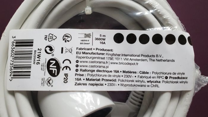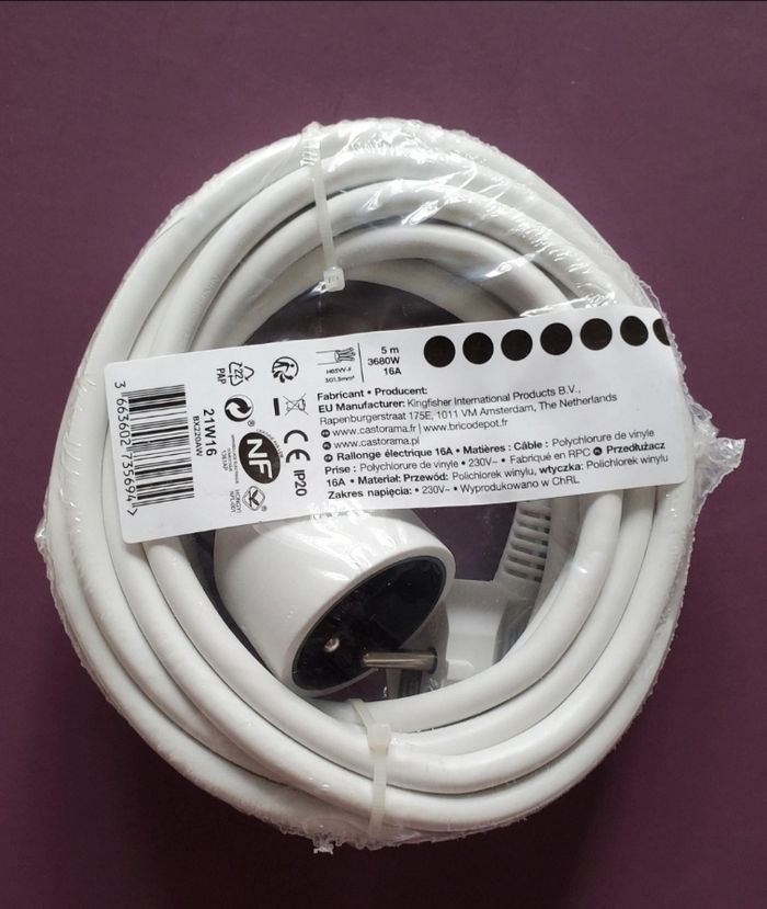 Je vends cette rallonge électrique de 5m. Neuve, sous blister.