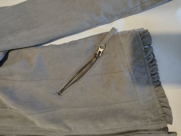 Tissu type suédine gris Fermeture éclair aux manches et aux poches, Legé à porter