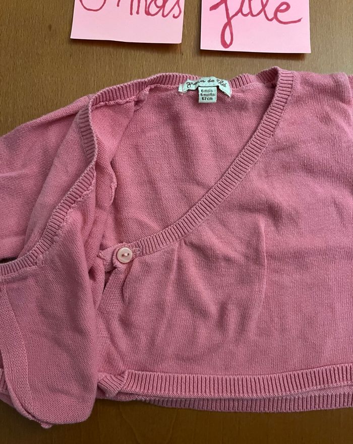 Bonjour, A vendre gilet cache coeur en taille 6 mois de la marque Grain de blé : 1€ Il a été porté il y a des bouloches voir les photos. Mis sur d’autres groupes de vente Regardez dans mon dressing j’ai des vêtements garçon du 3 mois à 10 ans Et des vêtements fille de la naissance à 4 ans
