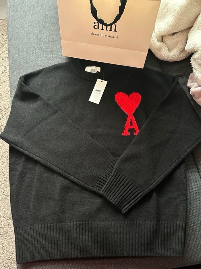 Bonjour ! Je vend ce superbe pull ami paris noir et rouge authentique en parfait état ☺️ L’article sera emballé soigneusement et expédié sous 48 heure 📦 Si vous avez la moindre question b’hésitez pas !