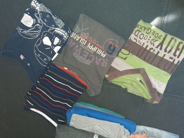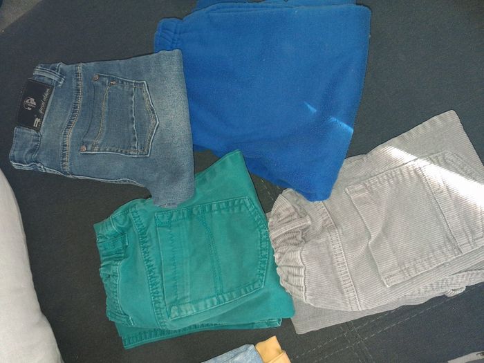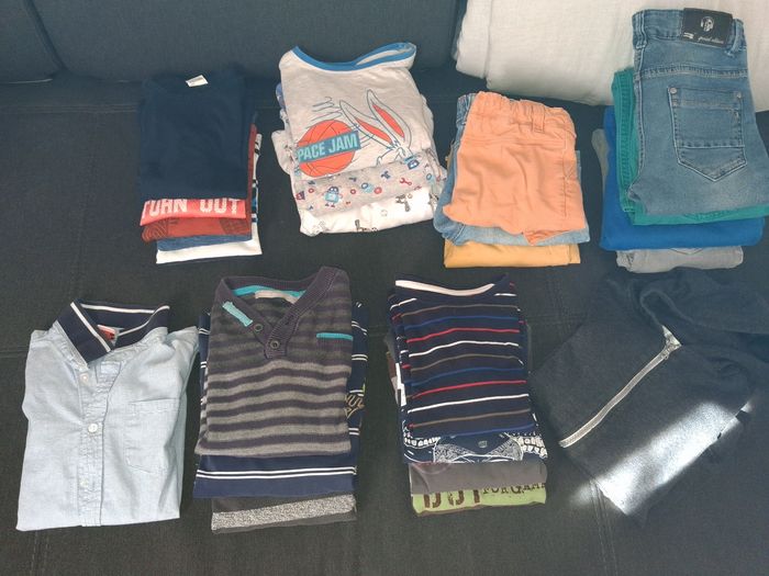 Coucou j'ai un Maxi lot 6-7 ans (les pièces en 8ans correspondent à un 7 ans). 3 pantalons 1 jogging 3 pyjamas 3 shorts 1 gilet 7 pulls 1chemise manche longue 3 tee-shirts/polos 2 débardeurs