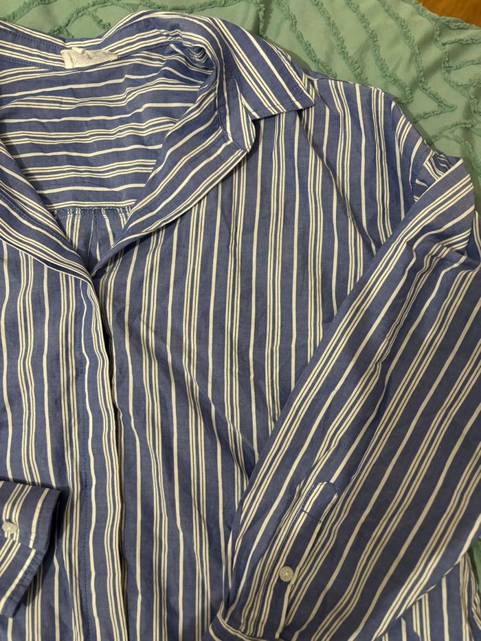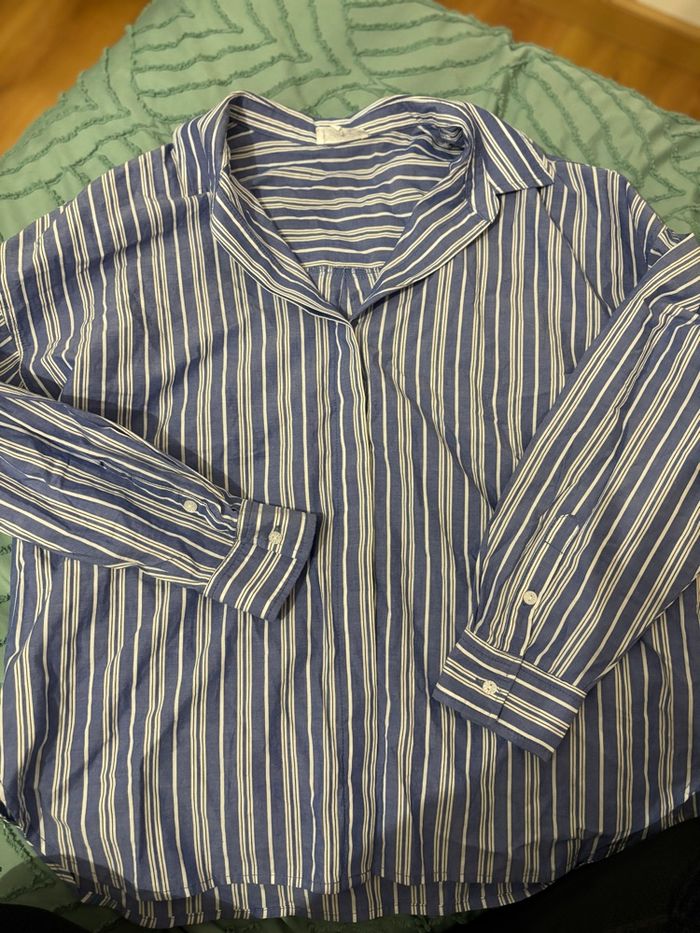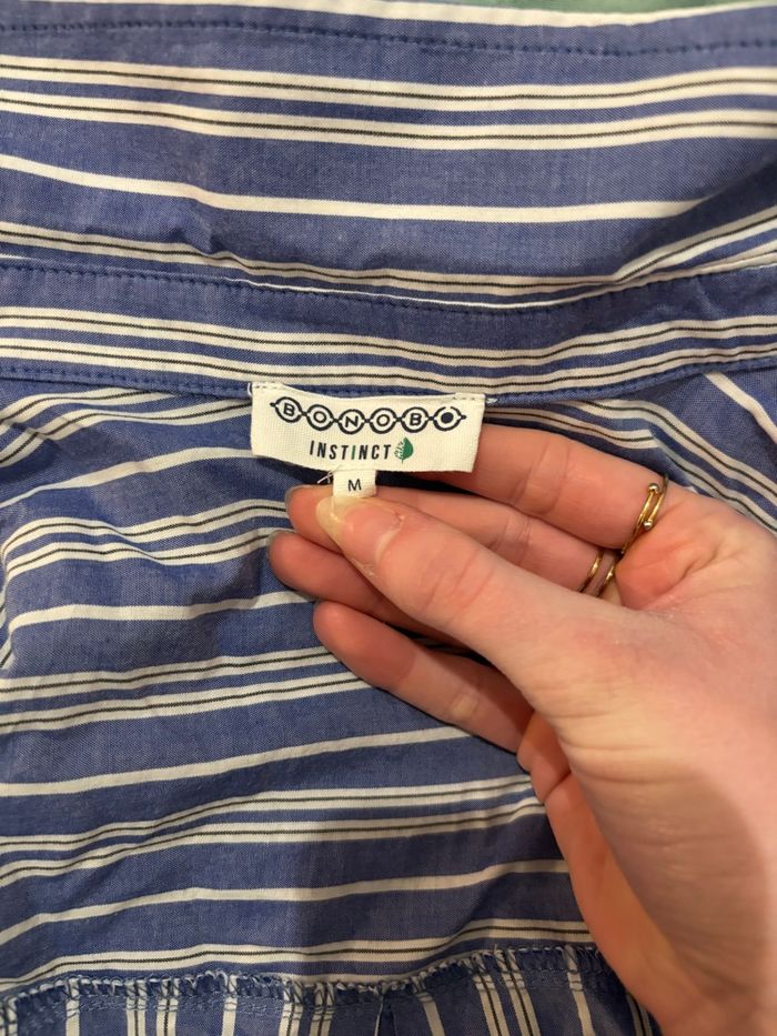 👚 : Chemise rayée blanc et bleu ❎ : Bonobo 👌🏼 : Excellent état 💙⚪️ : couleur bleu et blanc Aucun défaut sur la chemise, c’est une taille M