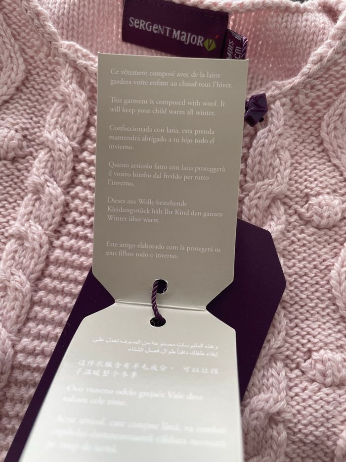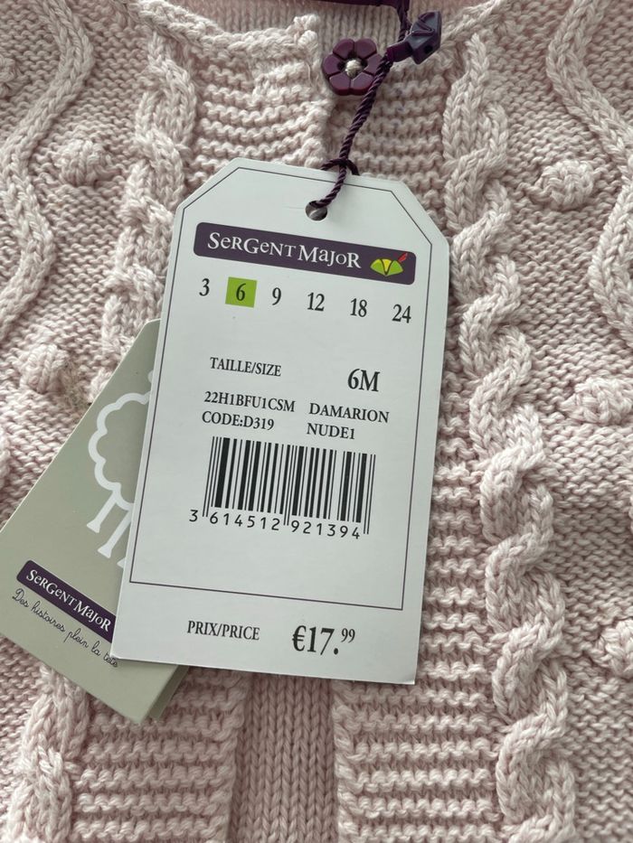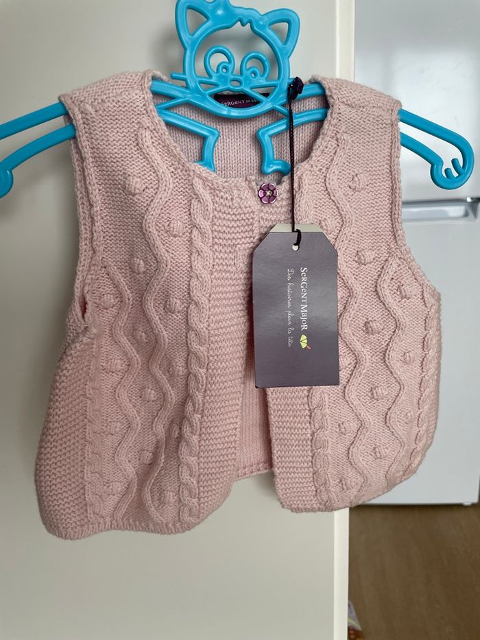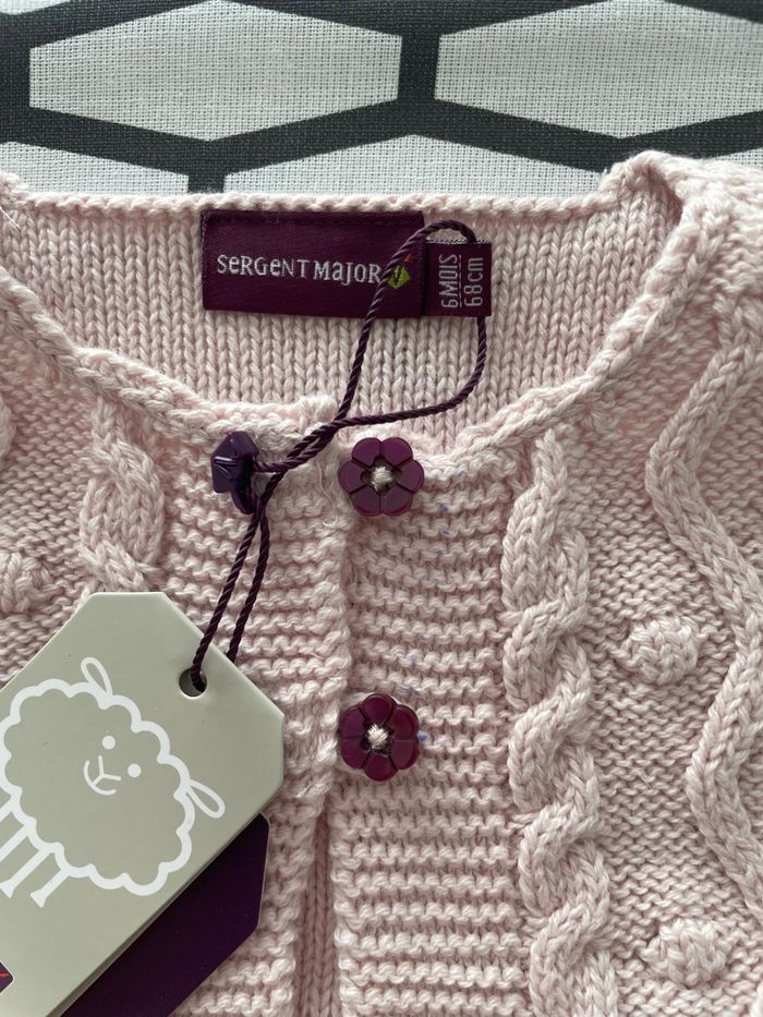 Gilet de marque Sergent Major Taille 6M / 68 cm 2 boutons à l’avant Couleur Rose Contient de la laine NEUF AVEC ÉTIQUETTE