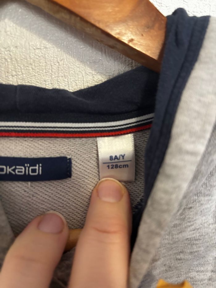 Sweat à capuche de chez okaidi Taille 8 ans État satisfaisant , présence quelques taches et un trou à l’arrière de la capuche