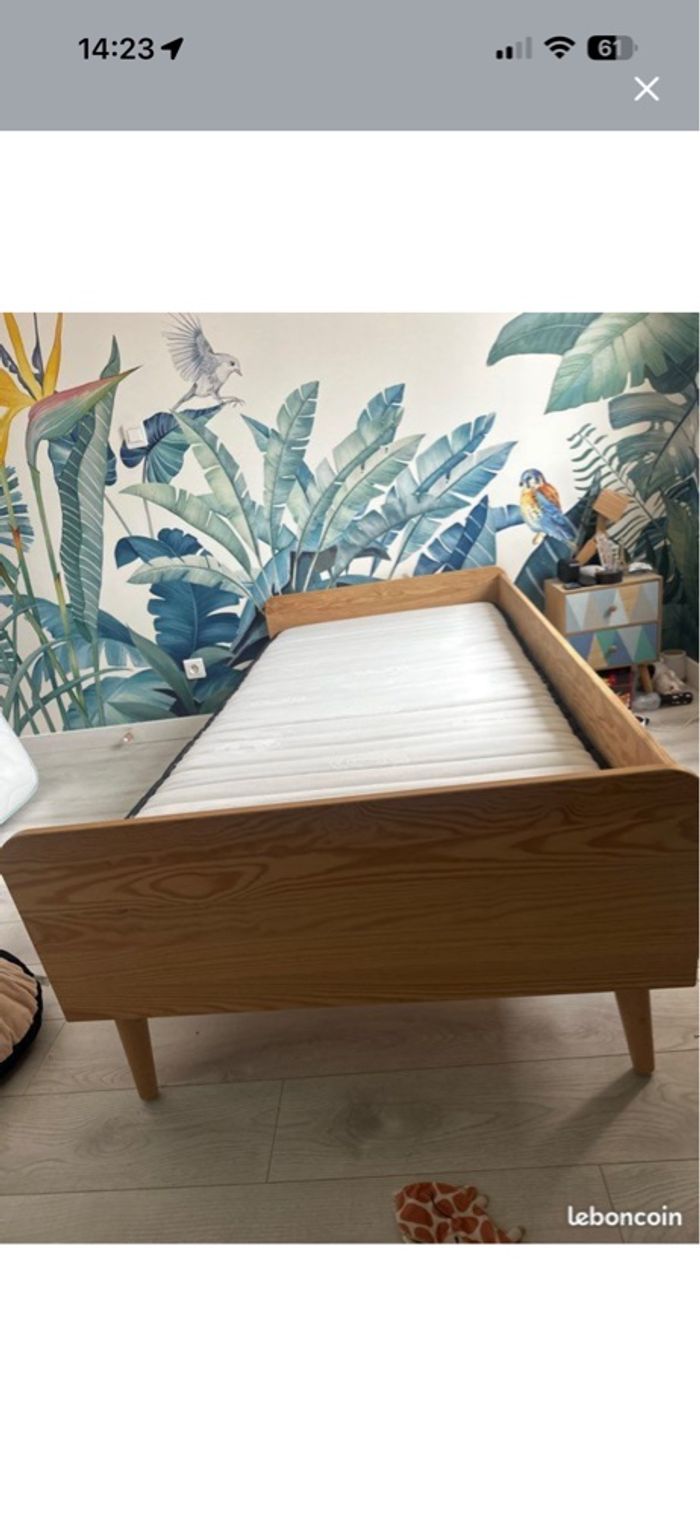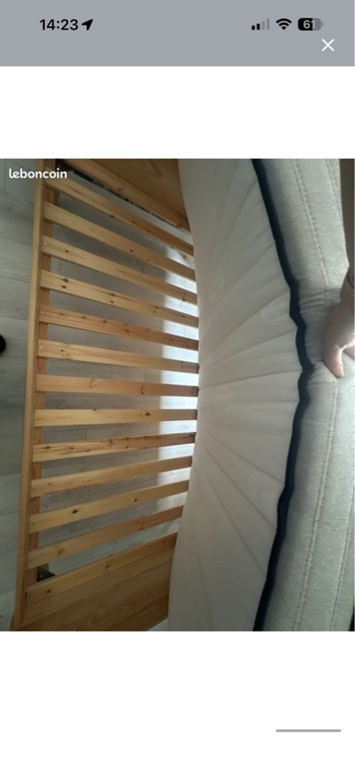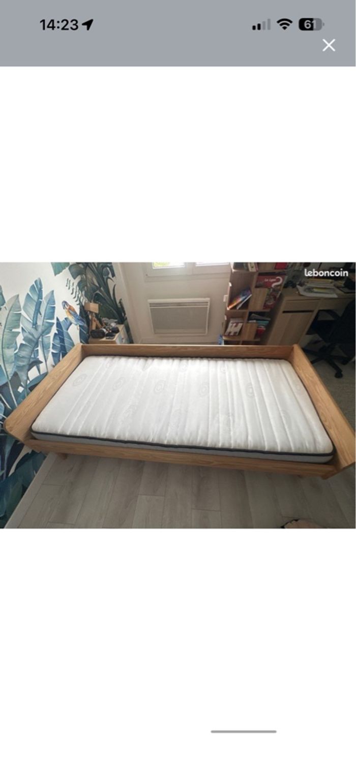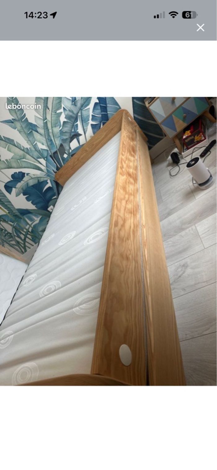 Lit 90x190 À vendre avec ou sans matelas (+ 30€) de 90x200 mais qui peut aller sur le lit Lit en bois qui fait style sofa mais on peut enlever la barre sur le côté ⚠️ PAS D’ENVOI À VENIR CHERCHER SUR DIEPPE