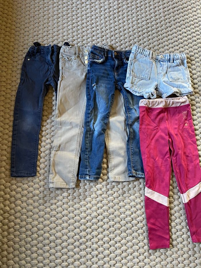 1 pantalon bleu marine 1 pantalon vert kaki clair 1 pantalon jean 1 short en jean clair 1 legging sport