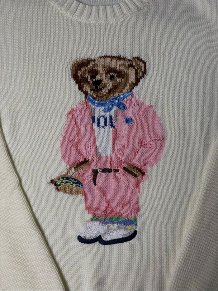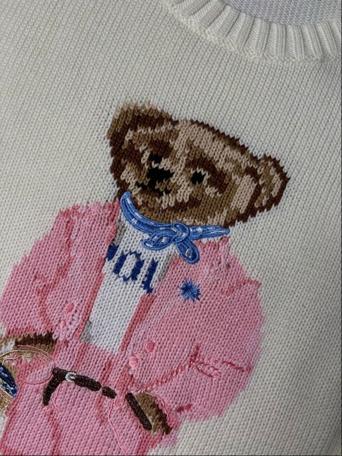 Pull Ralph Lauren polo bear motif ourson/ nounours blanc et rose taille M femme  - photo numéro 5