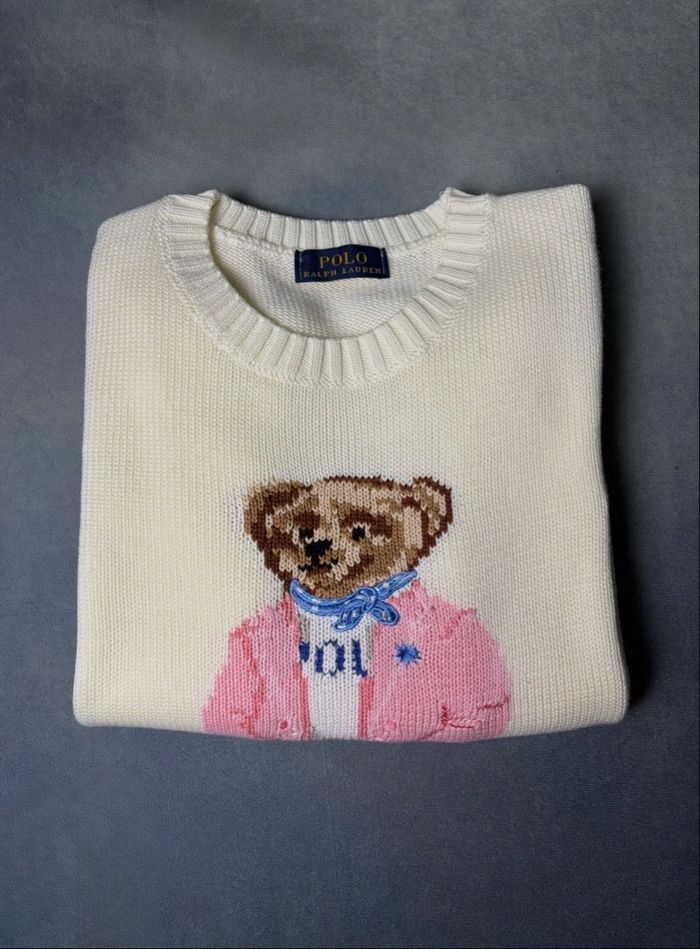 Pull Ralph Lauren polo bear motif ourson/ nounours blanc et rose taille M femme  - photo numéro 1
