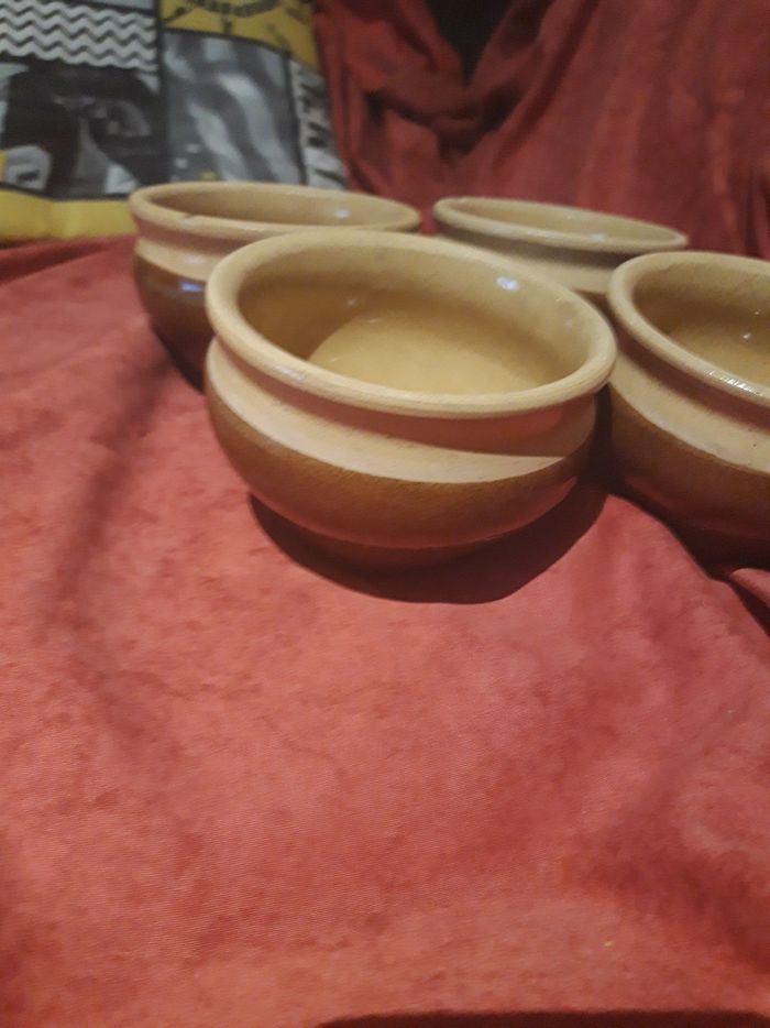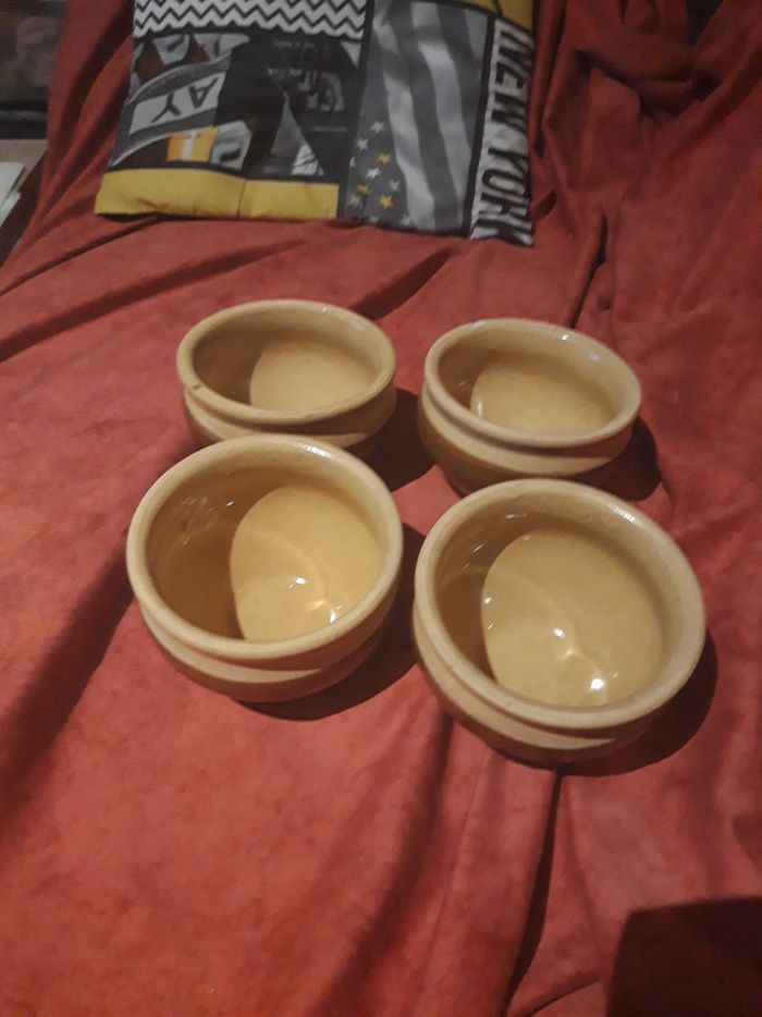 Lot de 4 petits ramequins en terre cuite Bon etat 1 € le lot (Caisse AURE)
