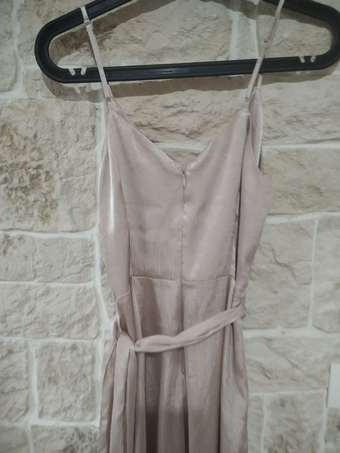 Magnifique combinaison rose blush satinée bretelles réglables La ceinture fait un super effet Petit accro sur le devant d'une jambe en bas qui ne se voit pas Attention, pas plus de 95 cm de tour de hanches mesdames
