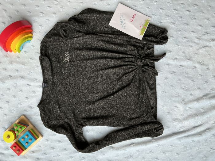 pull léger à nouer en bas noir chiné 12 ans kiabi - photo numéro 1