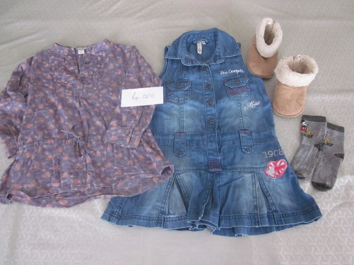 4 ans, robe jean lee cooper + tunique ml + cho7 + paire chaussons