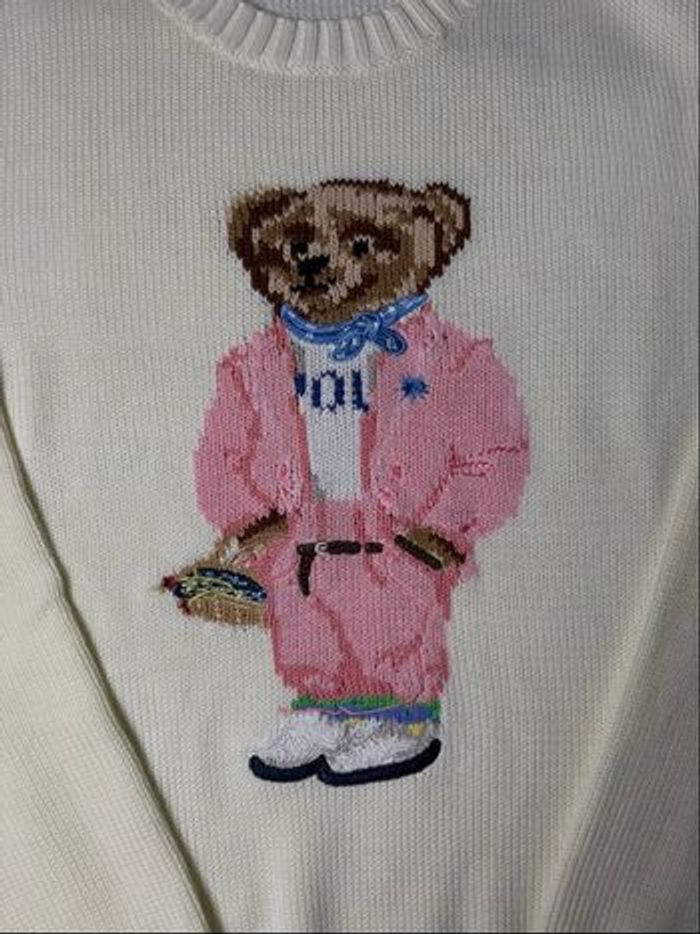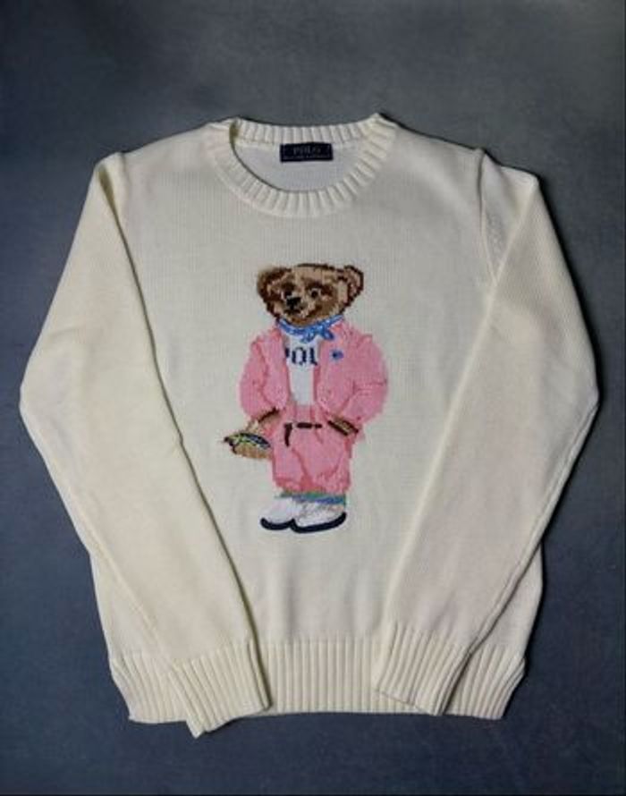 Pull Ralph Lauren polo bear motif ourson/ nounours blanc et rose taille M femme  - photo numéro 1