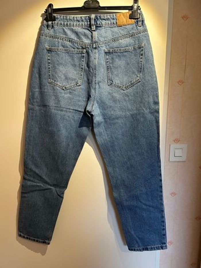 Jean cache cache bleu clair, facile à porter. Coupe confortable, idéale pour a mi-saison. Très bon état.
