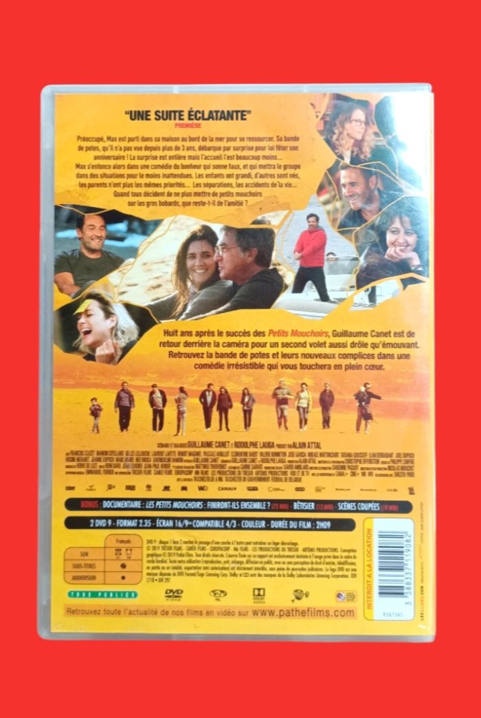 DVD Nous finirons ensemble (Édition 2 DVD) (Comédie Dramatique) "Nous finirons ensemble" est la suite du film "Les petits mouchoirs" Très bon état Réalisateur : Guillaume Canet Acteurs : François Cluzet - Marion Cotillard - Gilles Lellouche - Laurent Lafitte - Benoît Magimel Préoccupé, Max est parti dans sa maison au bord de la mer pour se ressourcer. Sa bande de potes, qu’il n’a pas vue depuis plus de 3 ans débarque par surprise pour lui fêter son anniversaire ! La surprise est entière mais l’accueil l’est beaucoup moins... Max s’enfonce alors dans une comédie du bonheur qui sonne faux, et qui mettra le groupe dans des situations pour le moins inattendues. Les enfants ont grandi, d’autres sont nés, les parents n’ont plus les mêmes priorités... Les séparations, les accidents de la vie... Quand tous décident de ne plus mettre de petits mouchoirs sur les gros bobards, que reste-t-il de l’amitié ? Langue : Français Sous-titres : Français Édition 2 DVD : DVD Le Film "Nous finirons ensemble" + DVD Bonus : Documentaire "Les petits mouchoirs : finiront-t-il ensemble ? (72 minutes) + Bétisier (12 minutes) + Scènes coupées (19 minutes) TOUS PUBLICS