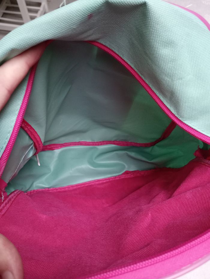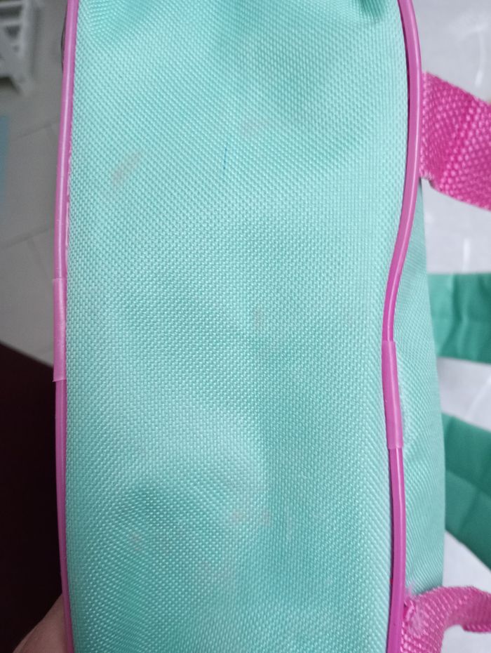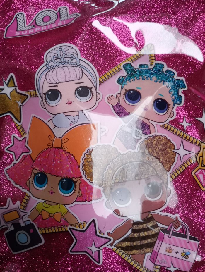 Sac à dos. Poupées LOL. Petites taches sur le fond et une sur le dessus. L'attache pour l'accrocher à un porte manteau est décousue d'un côté. Tout le reste est en très bon état. Dimensions : H 33 cm, l 26 cm, P 9 cm.