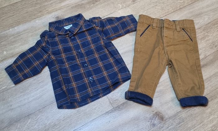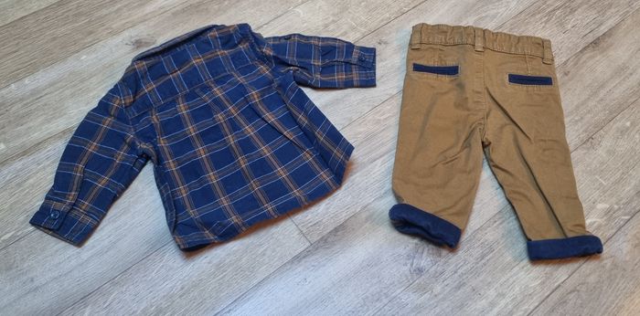 ensemble vêtement garçon tape à l'œil pantalon chino marron avec revers bleu marine et chemise à carreaux manches longue bleu marine et marron taille 3 mois très bon etat #ensemblegarcon #ensemblegarcon3mois #pantalonchino3mois #chemise3mois #tapealoeil #tapealoeilgarcon3mois #garcon3mois #taille3mois