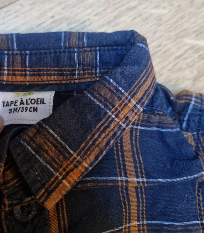 ensemble tape à l'œil pantalon chino et chemise à carreaux marron et bleu marine taille 3 mois - photo numéro 3