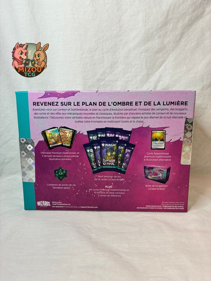 🃏 BUNDLE LORWYN ÉCLIPSÉ - MAGIC THE GATHERING Bundle de l'extension Lorwyn Éclipsé (Lorwyn Eclipsed) en version française. 📦 Contenu complet : - 9 boosters de jeu Lorwyn Éclipsé - 1 carte à illustration alternative Premium foil (exclusive Bundle) - 15 terrains Premium (foil) dont 5 full-art - 15 terrains non-Premium dont 5 full-art - 1 compteur de points de vie Spindown - 1 boîte de rangement thématique - 2 fiches de référence ✨ L'extension marque le retour sur le plan mythique de Lorwyn et Sombrelande (Shadowmoor), avec des mécaniques comme Gangrène, Changelin, Évocation et les cartes transformables. État : scellé 🚀 Livraison rapide 24-48h maximum Mots-clés: Bundle Magic, Lorwyn Éclipsé, Lorwyn Eclipsed, Magic The Gathering, MTG, booster, carte promo, foil, terrain premium, Shadowmoor, Sombrelande, français, FR, TCG, cartes à jouer, extension 2026