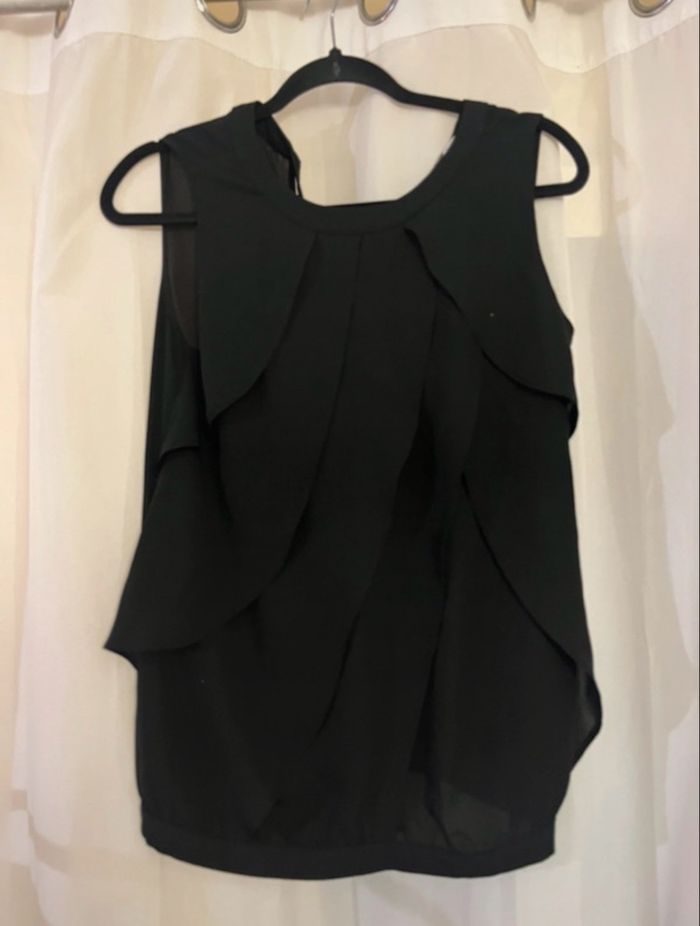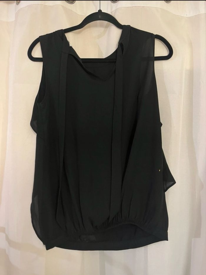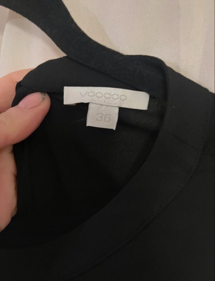 très jolie haut noir avec volant très agréable à porter parfait pour les mi saison mais aussi l’hiver avec un col roulé de la marque voodoo en taille 36