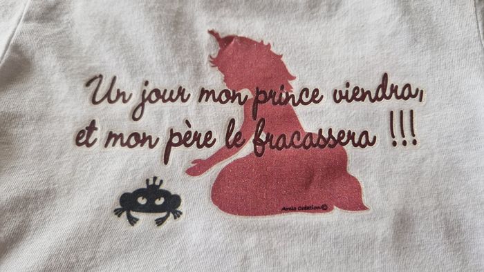 1 pantalon petit volant dans le bas 1 legging "mon 1er major" 1 t-shirt "Arclo creation" 1 t-shirt rose 1 haut manche longue " Obaïbi " Taille 6 mois En très bon état