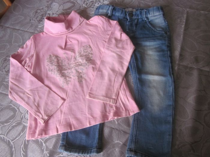 4/5 ans, jean 4 ans name it mini mize taille ajustable + haut ml 5 ans vert baudet