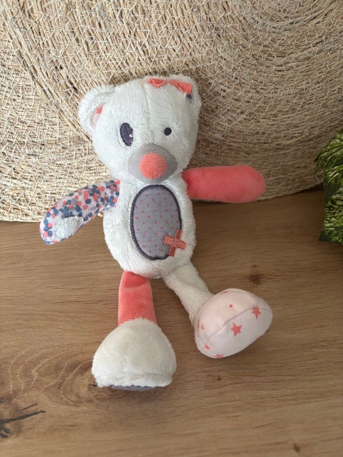 Doudou ours blanc rose violet étoile tao tape à l œil  - photo numéro 3