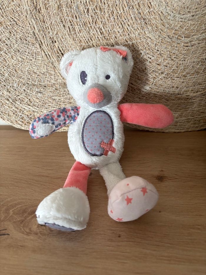 Doudou ours blanc rose violet étoile tao tape à l œil  - photo numéro 1