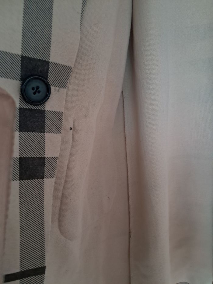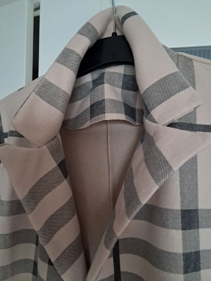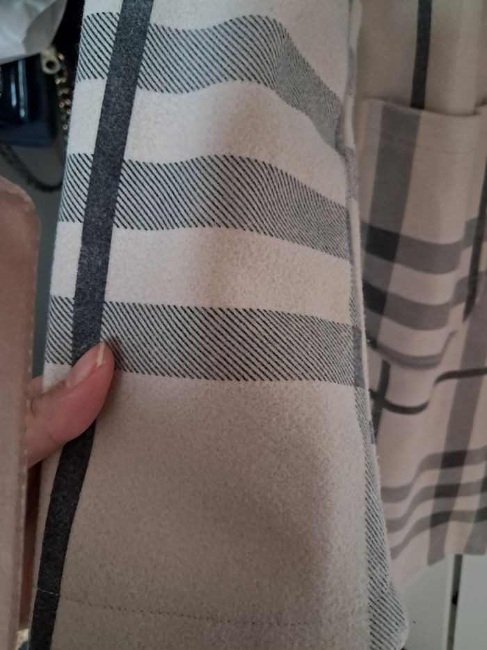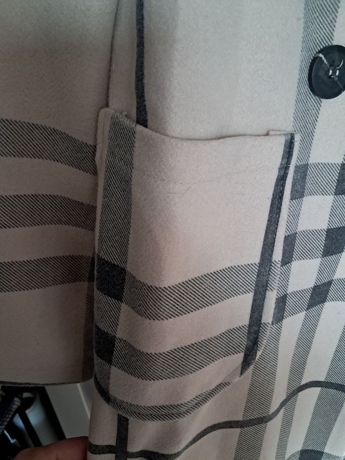 Très bon état Peu porté Imprimé à carreaux beige et gris anthracite Fermeture avec 1 bouton 2 poches Marqué 12 sur l'étiquette mais il s'agit d'une taille unique Polyesther