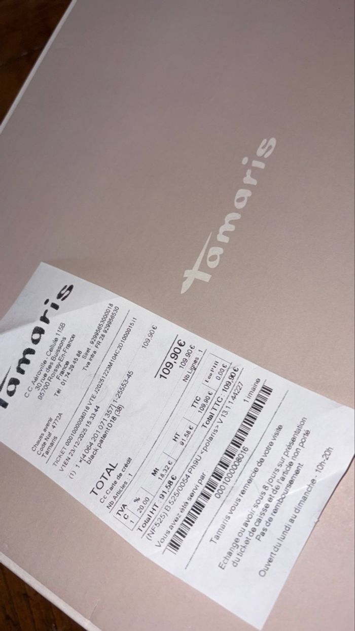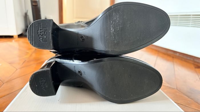 Bonjour, Je vends cette magnifique paire de bottes Tamaris noires vernies, achetée en boutique à 109€ le 23/12/2025. Avec ma grossesse, ma pointure a changé et j’ai dû racheter exactement les mêmes dans la taille au-dessus. Malheureusement, je n’ai pas pu les retourner à temps, c’est pourquoi je les mets en vente pour faire une heureuse 💛 Elles ont été portées une seule fois pendant les fêtes de fin d’année. Elles sont donc en état impeccable, comme neuves avec la boîte d’origine et le ticket de caisse. ✔️ Marque : Tamaris ✔️ Article : Bottes Hautes👢 ✔️ Matière : Cuire vernis ⬛️ ✔️ Taille : 38 ✔️ Couleur : Noir 🖤 ✔️ État : Comme neuve ✅ ✔️ Portées : 1 seule fois ☺️ ✔️ Ticket de caisse fourni🧾 💬 Prix ferme : au vu de l’état parfait et du fait qu’elles sont neuves, le prix n’est pas négociable. Merci pour votre compréhension. N’hésitez pas si vous avez des questions ! #bottes#haute#cuire#confort