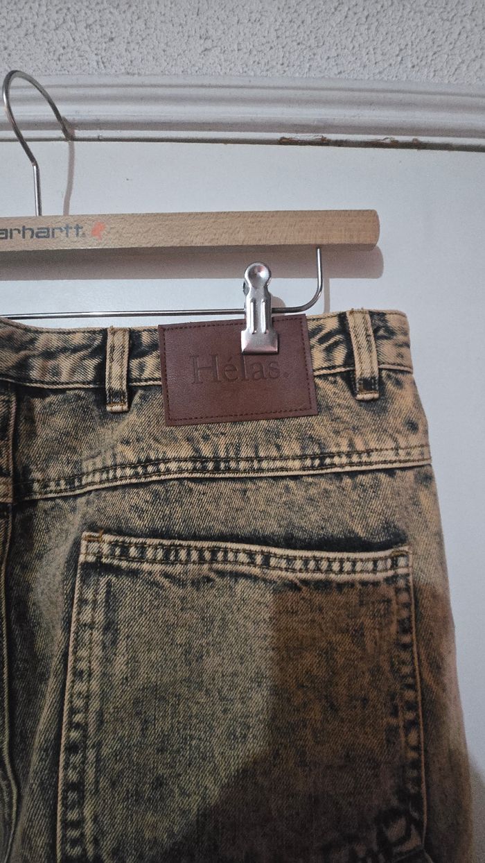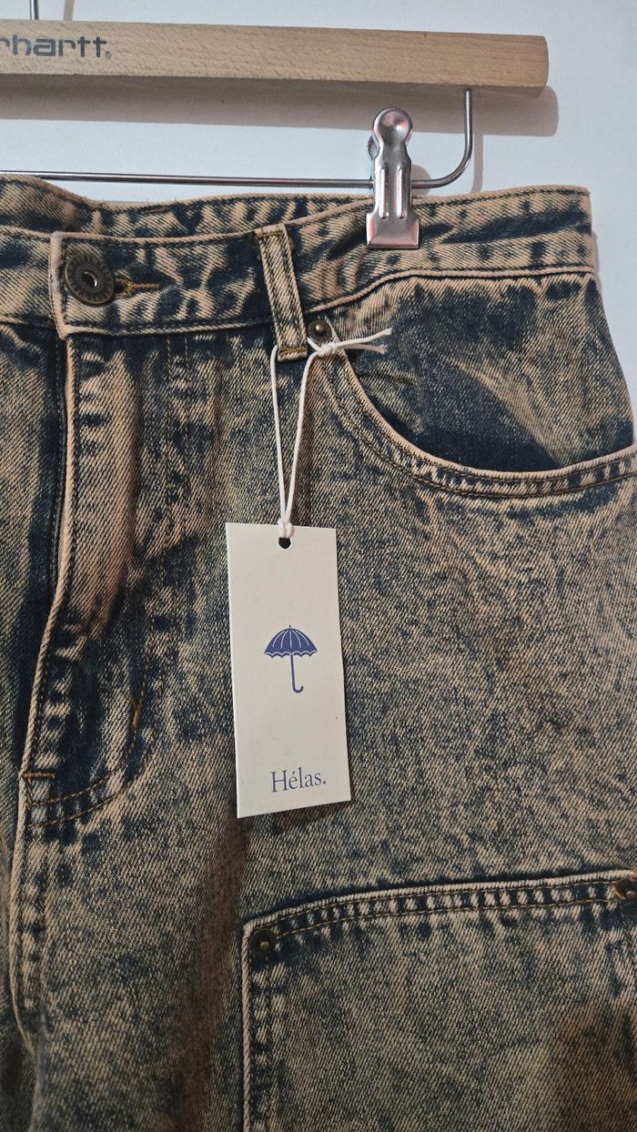 Pantalon baggy de la marque hélas taile M ACID WASHED BAGGY CARPENTER PANTS WITH UMBRELLA EMBROIDERY ON CHANGE POCKET. CARPENTER UTILITY PANTS POCKETS AND DETAILS. Neuf avec étiquettes MATERIAL: 100% DENIM COTTON