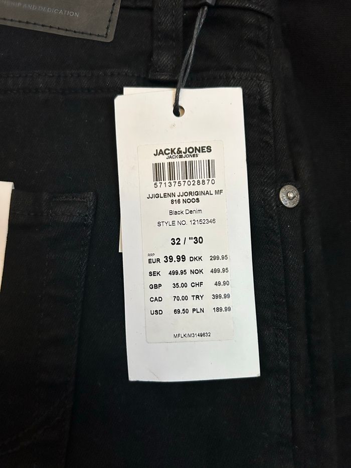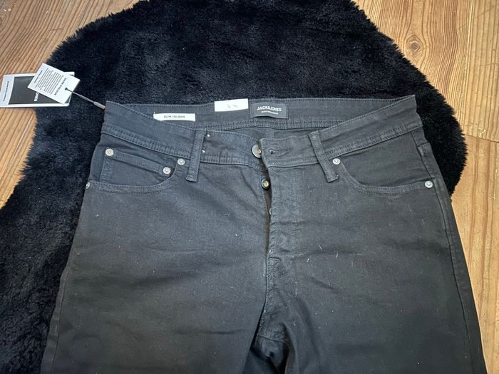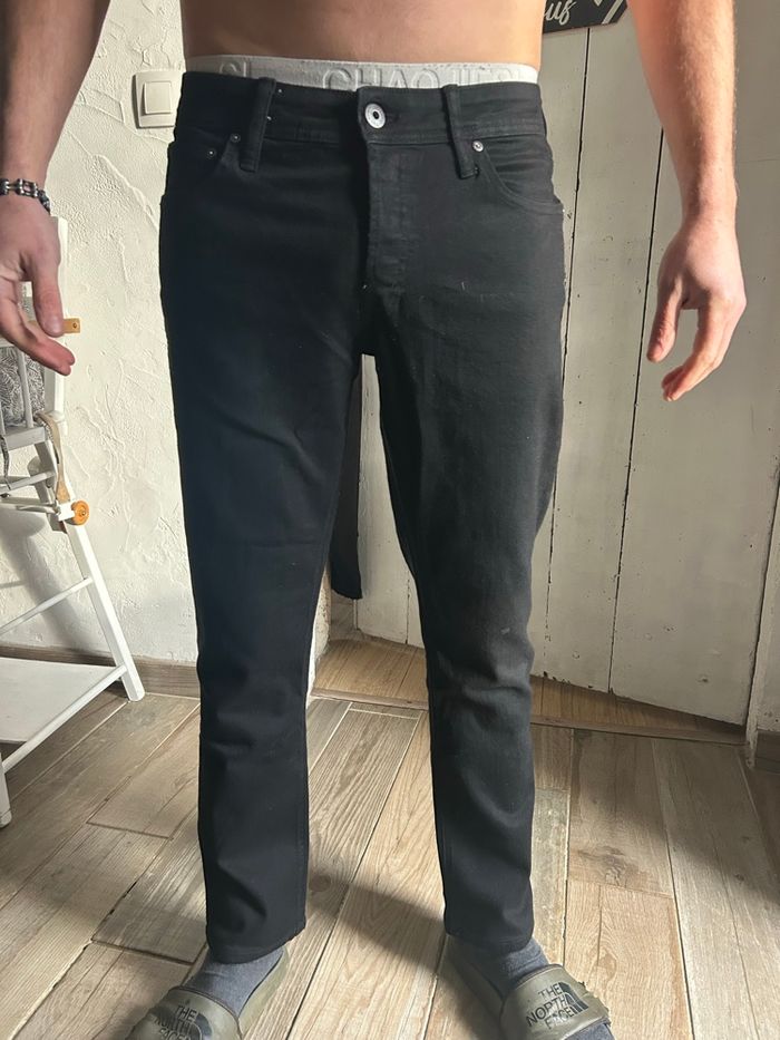 Jean noir Jack et Jones neuf avec étiquette Coupe slim 👍 acheté 40€ W42, L30, correspond à un 42 😉 modèle photo mesurant 1m80 (un peu court) Neuf, porté juste 1 fois pour la photo