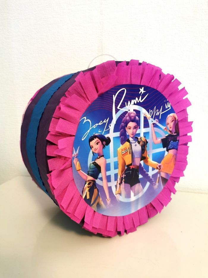 Pinata k-pop demon hunters Pinata avec bâton. Dimensions 42x30x13cm Pinata à casser.: Elle contient une trappe pour la remplir et un crochet pour la suspendre Bâton en bois multicolore mesure 40cm Piñatas à ficelles : Environ 15 ficelles multicolore. La pinata ne se détruit pas. Vous pouvez la garder comme souvenir ou la réutiliser. Idéal pour les plus petits ou les petits espaces. Elle contient une trappe pour la remplir et un crochet pour la suspendre, plus une trappe plus grande pour les ficelles. Pinata de 25cm de diamètre x13cm avec ficelles. Prix, 15e. Pinata de 30cm de diamètre x 13cm avec ficelles. Prix, 20e. D'autres articles disponibles. Invitations à remplir Invitations à personnaliser. Cake topper /décoration gâteau personnalisé. #anniversaire #anniversaireenfant #anniversairekpop #pinata #k-pop #demonhunterskpop #decorationfete #decorationanniversairestitch #cadeaufille #anniversairefille #cadeaupersonnalise #pinatakpop #happybirthday