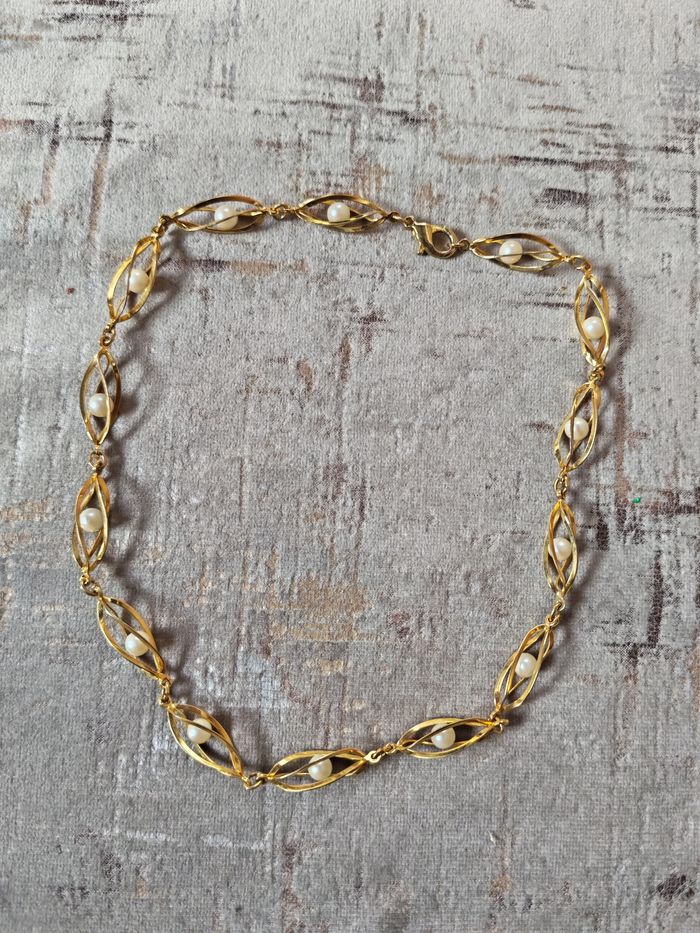 Collier ras de cou en volumineux en métal doré et perles - photo numéro 1
