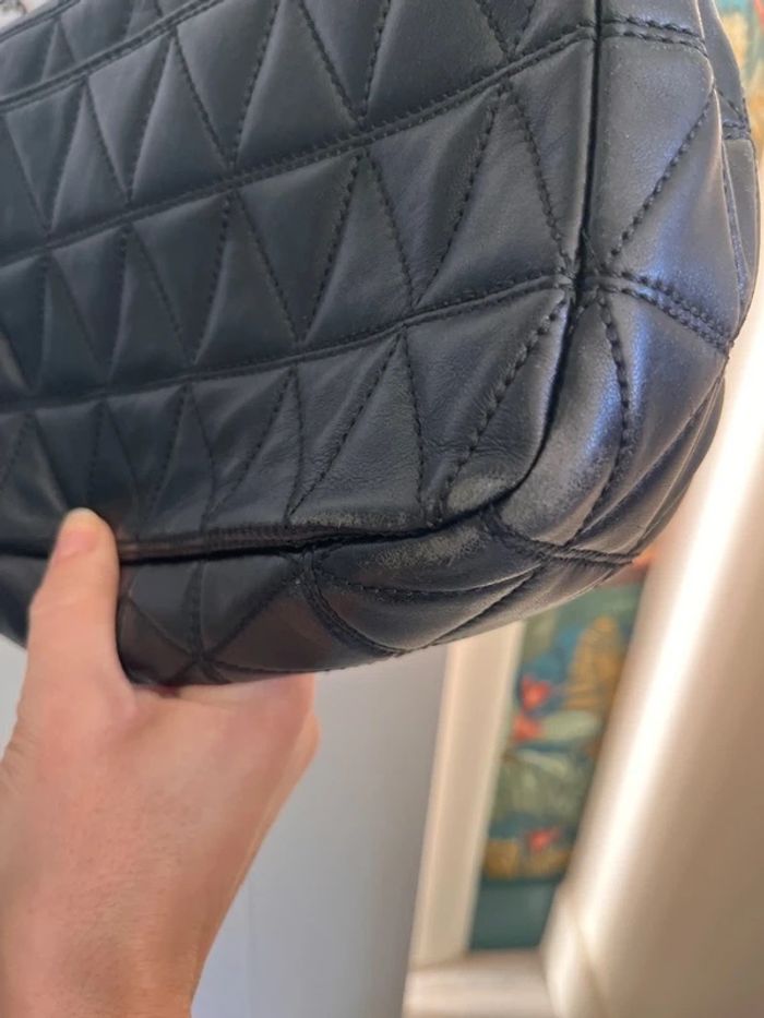Sac à main imitation cuir Coloris noir Marque Mickael kors Longueur en bas : 24cm Hauteur: 17cm Profondeur: 8cm A noter le cuir est un peu abîmé par endroit (aux angles en bas du sac à main)