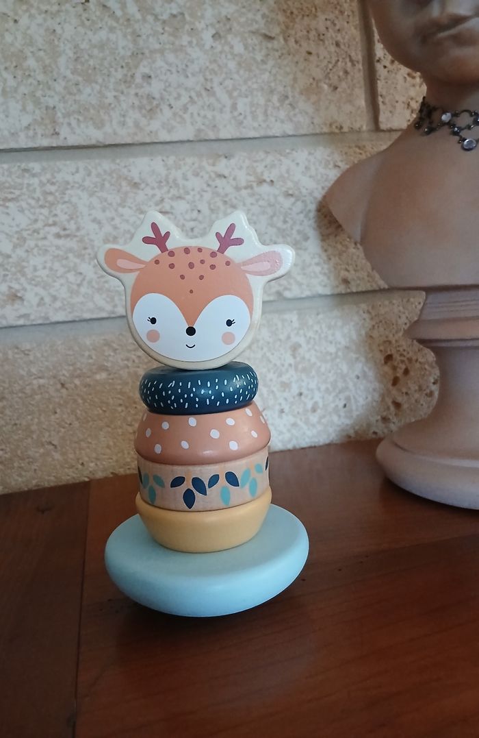 Jouet bois massif: Formes"Petite Biche" à empiler & culbuto  - photo numéro 1
