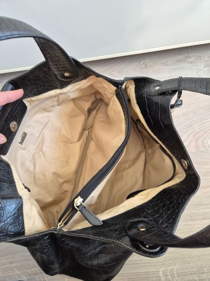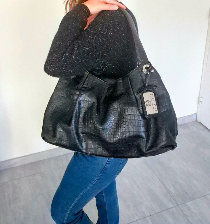 Sac à main noir, vernis, aspect crocodile, forme allongé, 2 grand compartiment, Le sac est en excellent état , vraiment magnifique. ➡️100% cuir ➡️dimension 27 cm x 44 cm x 12 cm ➡️très légère usure sur le dessous mais honnêtement ça ne se voit pas. voir les dernières photos . ✈Envoi rapide des colis 💗 Abonnez vous à mon profil, nombreux articles ajoutés régulièrement ! 🌸 Tapez Laetitresors pour voir mes annonces #laetitresors_sac #sac #noir #le #tanneur #brillant #cuir #grand #anse #epaule #vintage #laetitresors