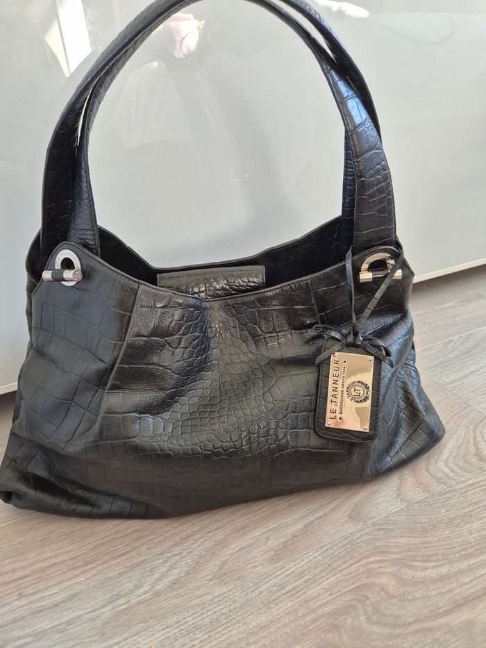 Sac à main noir crocodile vintage Le Tanneur - photo numéro 1