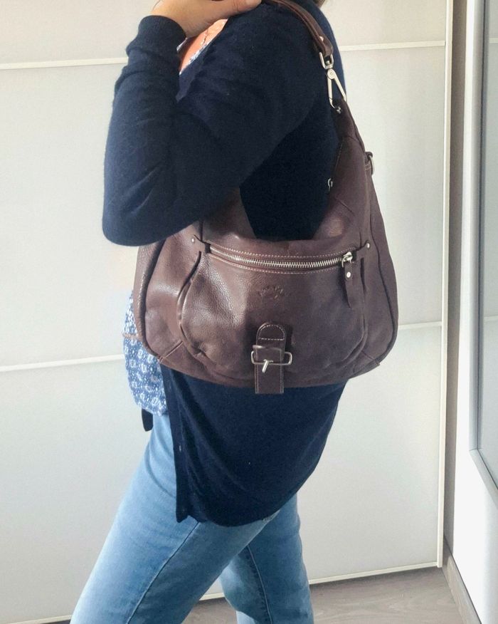 Sac à main en cuir marron de chez Katana, forme demi lune, assez grand, se porte sur l'épaule, 2 poches exterieur ➡️ Dimension 46 cm x 21 x 10 cm ➡️ Longueur anse 18 cm ⭐ Sur le derrière du sac il y a des tâches ou le cuir est un peu plus clair sinon très bon état ✈Envoi rapide des colis 💗 Abonnez vous à mon profil, nombreux articles ajoutés régulièrement ! 🌸 Tapez Laetitresors pour voir mes annonces #laetitresors_sac #sac #main #cuir #katana #demi #lune #marron #vintage #poche #laetitresors