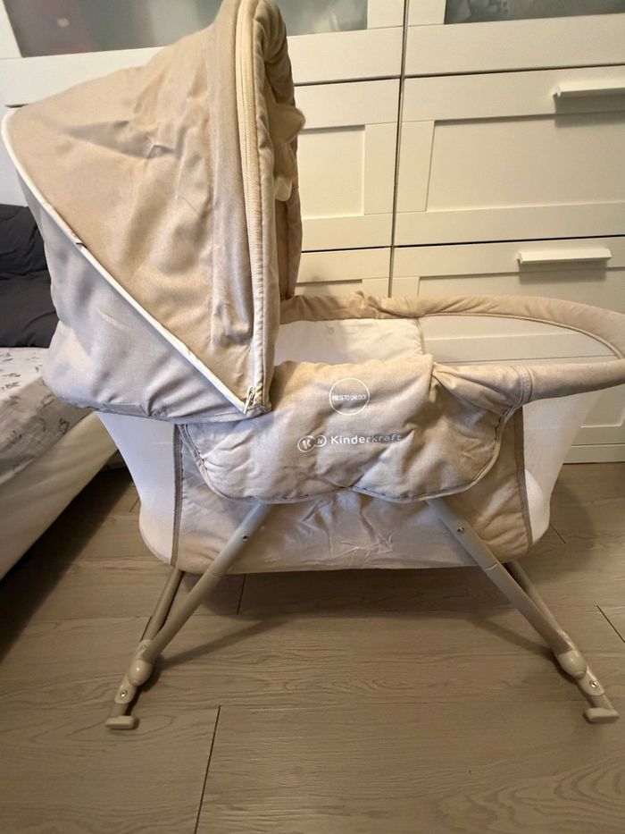 Je vends un berceau bébé Kinderkraft, couleur beige, avec : • matelas • habillage textile • sac de transport d’origine Très Bon état général. 📍 À venir récupérer sur place – pas d’envoi.