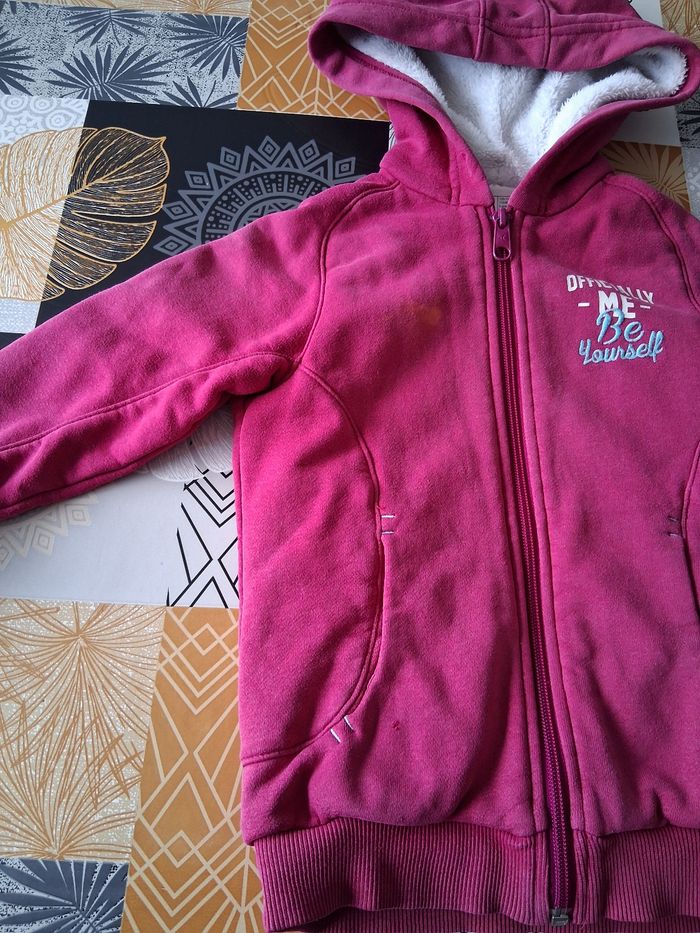 Très bon état, a capuche, intérieur fourré chaud et tout doux, une petite tache de peinture devant
