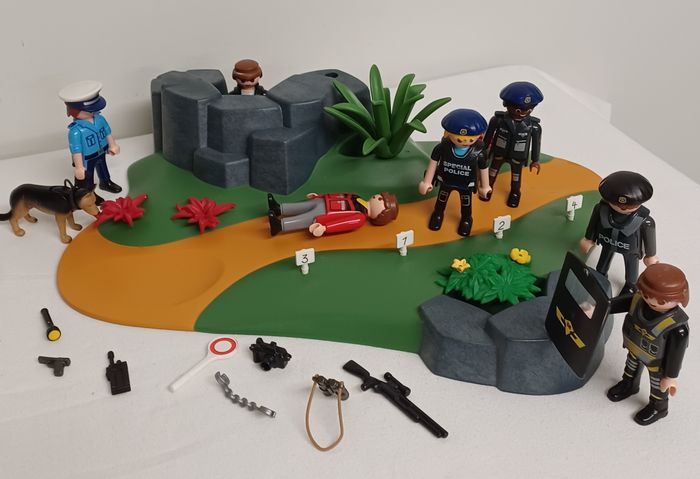 Lot de policiers playmobil 5 policiers 1 bandit 1 personnage plaque de police scientifique chien policier J'ai d'autres playmobil en vente