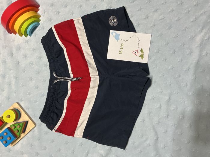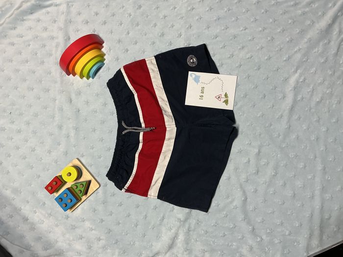 caleçon de bain marine rouge et blanc lien de serrage slip intégré 16 ans intemporel - photo numéro 1