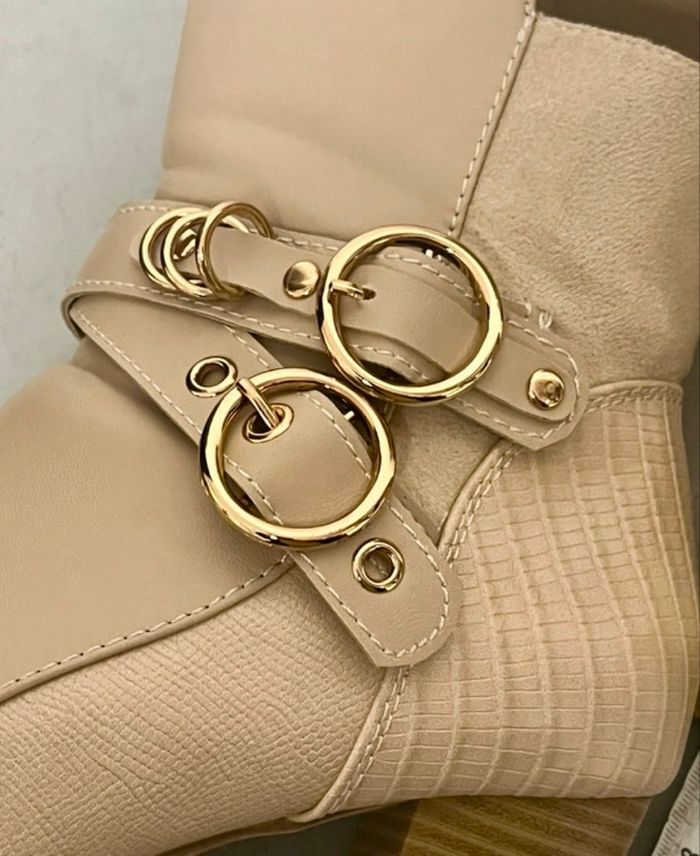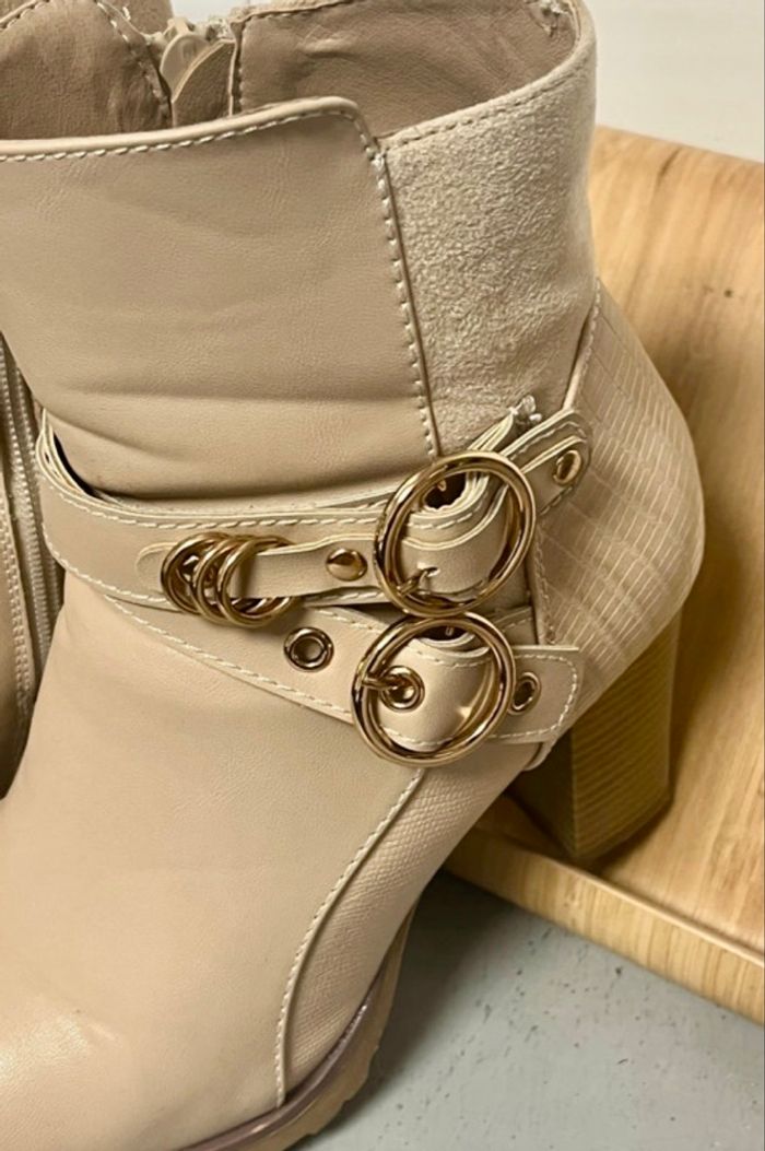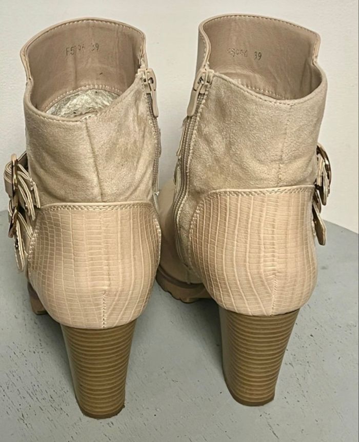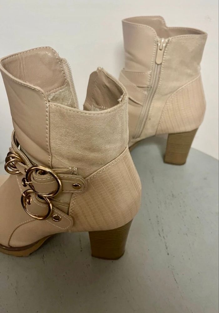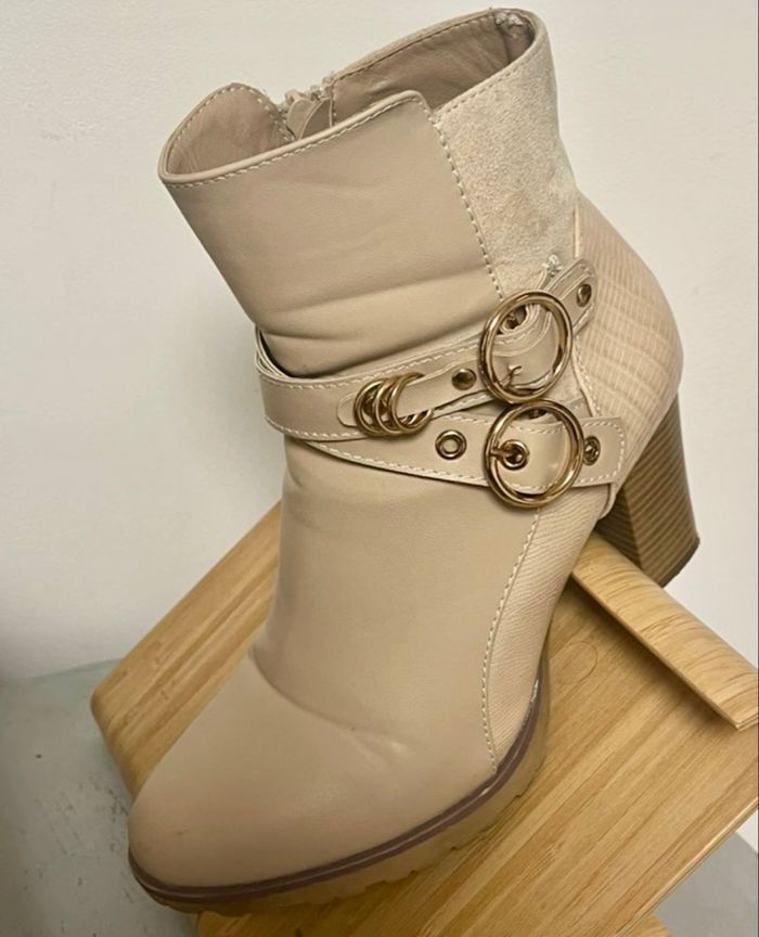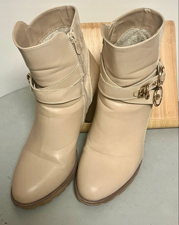Bottines fourrées de couleur beige Marque lady glory Pointure 39 Mise 2 ou 3 fois mais le talon est trop haut pour moi TBE