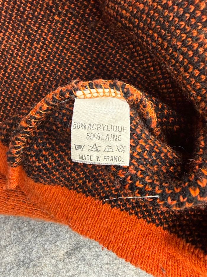Pull Maille Laine Orange Made In France Vintage Y2K Tribal L - photo numéro 7